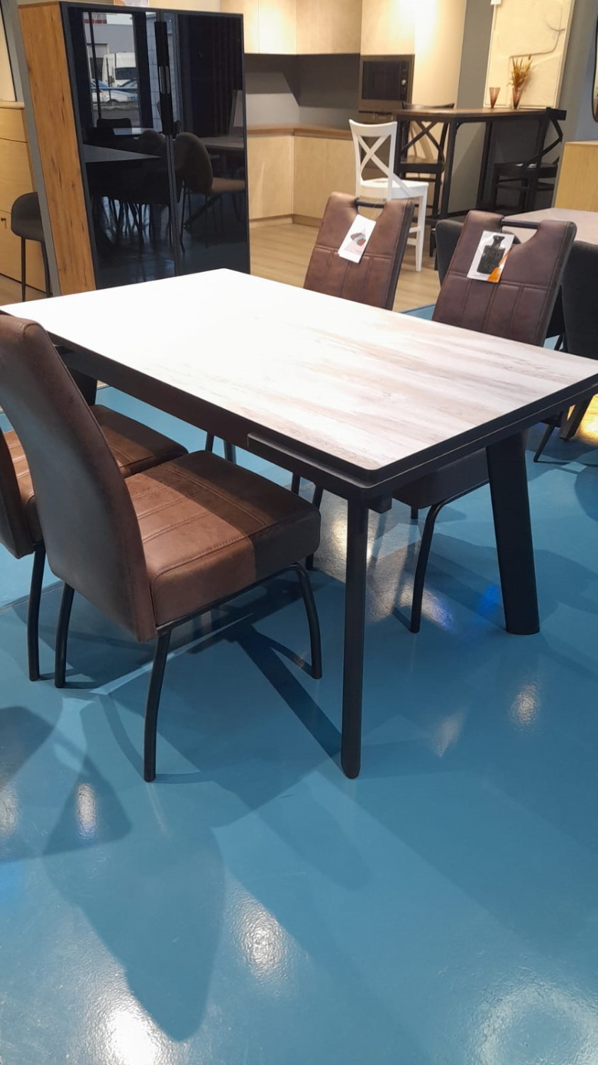 Стол обеденный Стайл 42 раздвижной (ДУБ КАНЬОН БАФФИН 0687 FRS (БРАШИРОВАННОЕ ДЕРЕВО) / ЧЕРНЫЙ МАТОВЫЙ.  Размер 1400 мм* 800 мм)