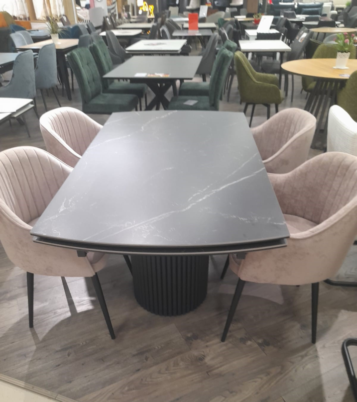 Обивка стульев из велюра, мягкая ткань и удобная посадка делают этот стул идеальным выбором для длительных обедов и уютных посиделок.