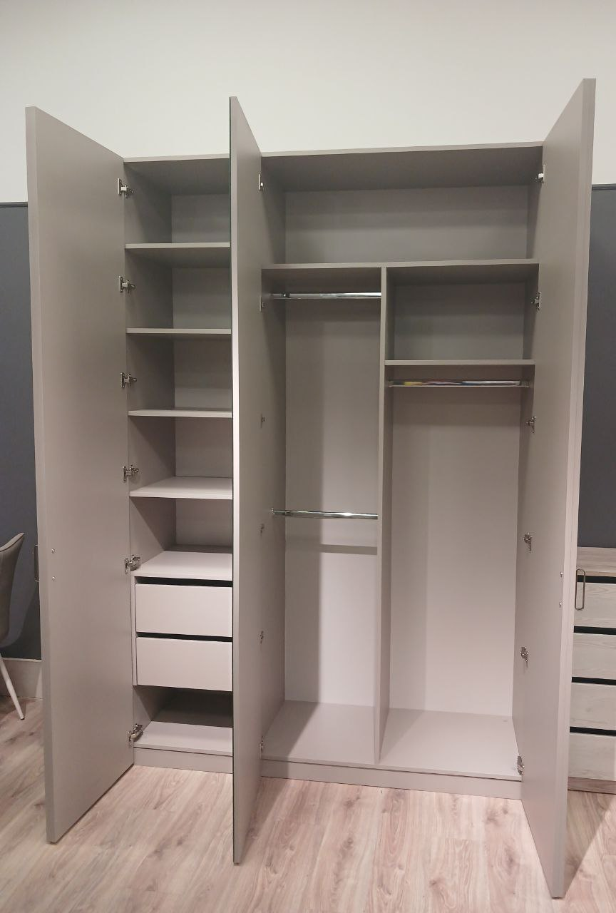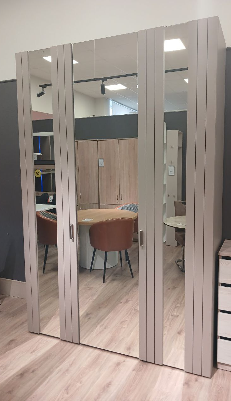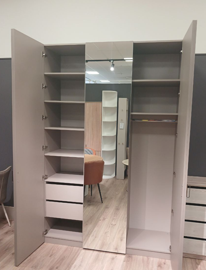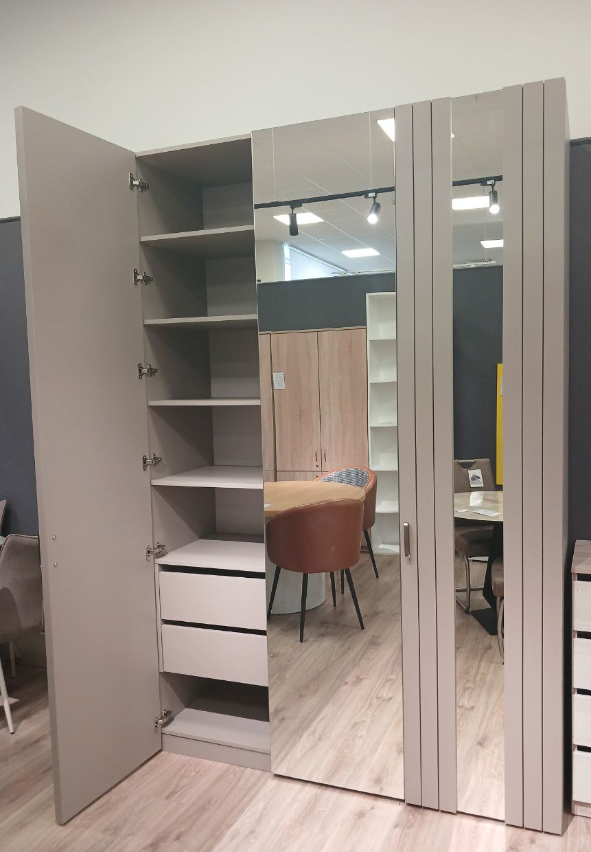 Фасад: ЛДСП Серый Камень U727 ST9 + вставки зеркало серебро 4 мм.