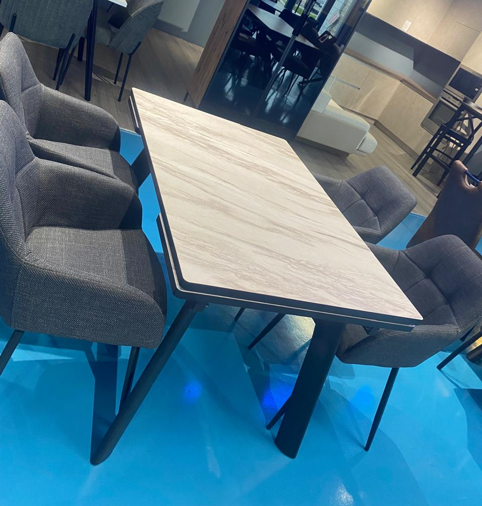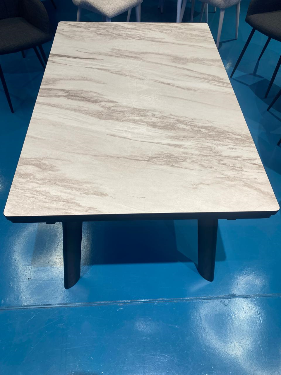 Стол обеденный "Стайл 42 Бэлла" раскладной (ПЛАСТИК БРАУН СТОУН 930 / ЧЕРНЫЙ МАТОВЫЙ. Размеры 1200-1520 мм * 750 мм * 800 мм)