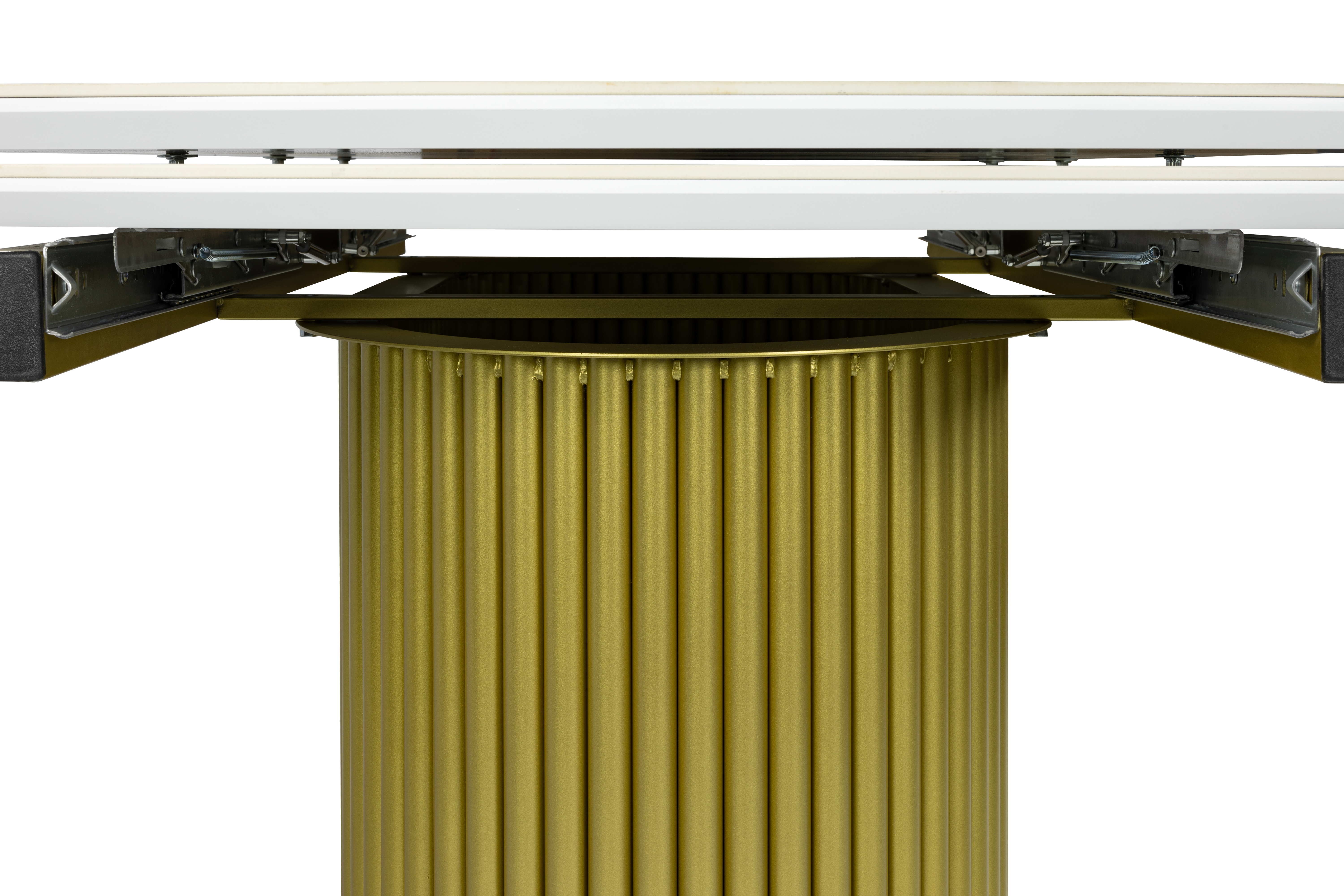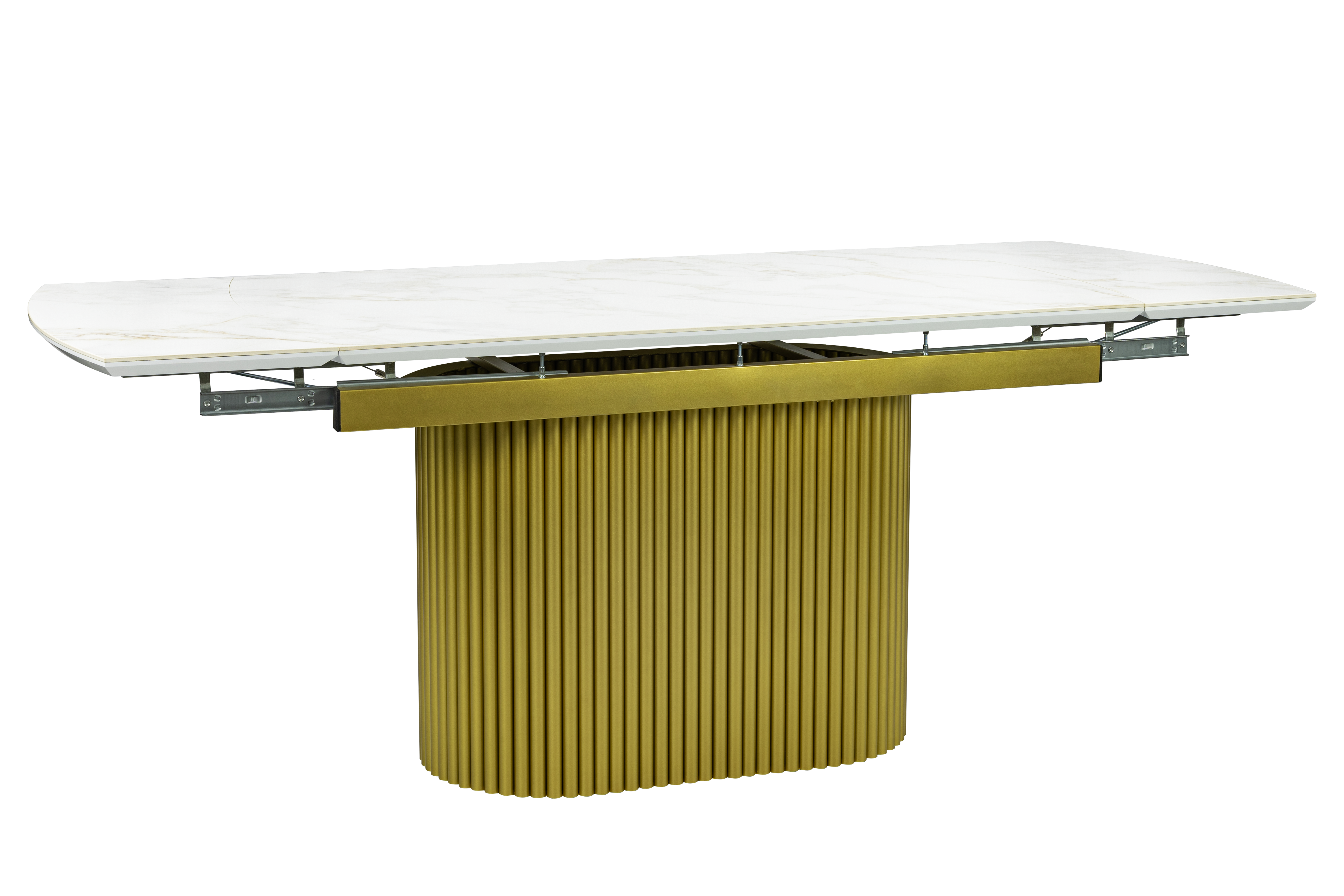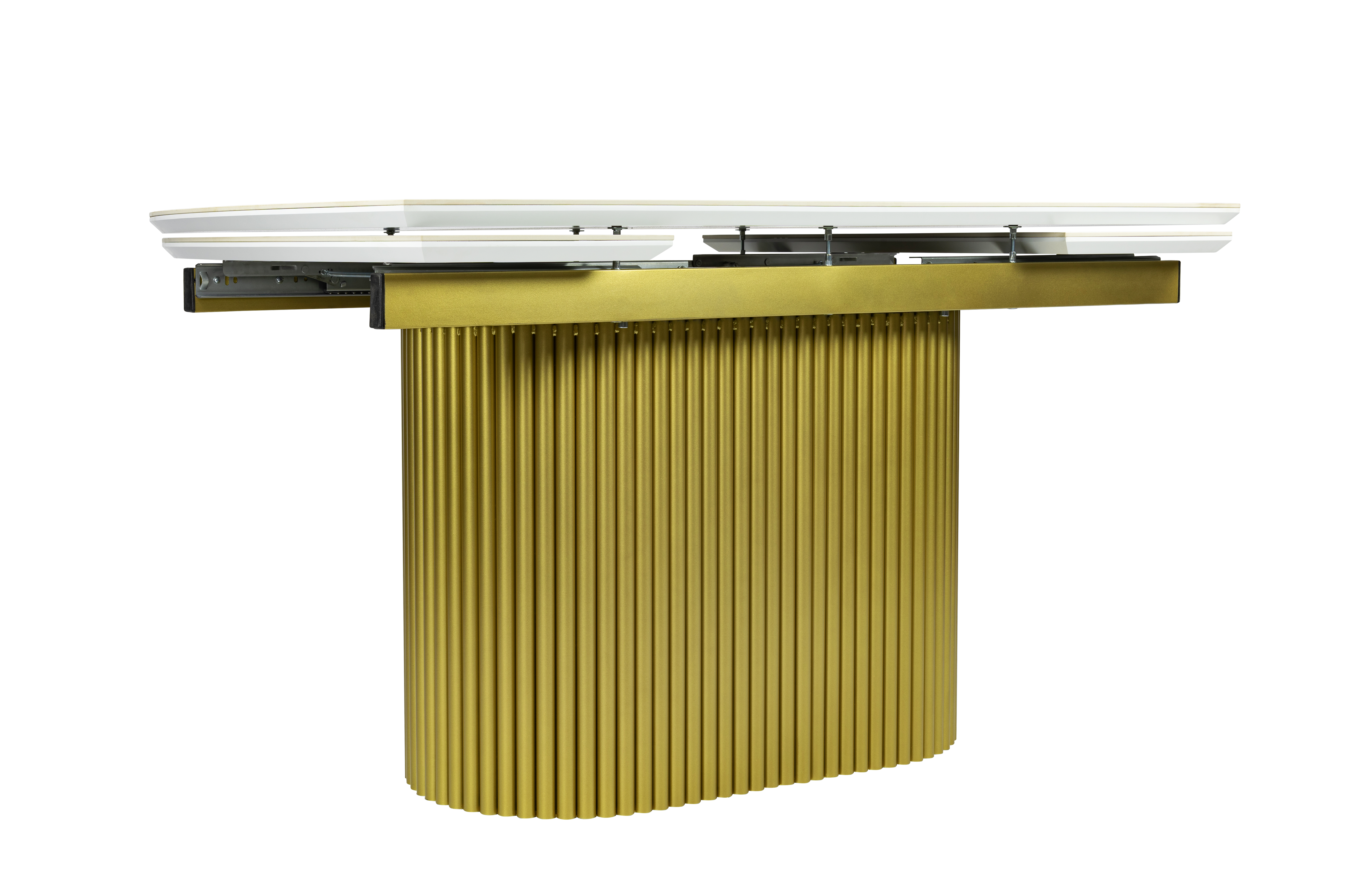 Стол обеденный "Элит 7" раскладной (КЕРАМИКА БЕЛЫЙ ЗОЛОТО МАТОВЫЙ 111 GILT WHITE / ЗОЛОТО. Размер 1600-2240 мм * 750 мм *900 мм)