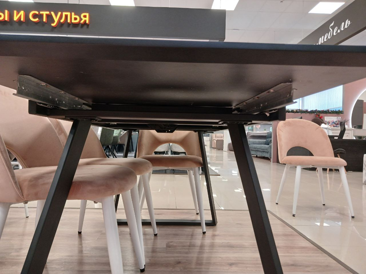 Стол обеденный L-221-1 раскладной (HPL 5243-03 NATURAL WALNUT С ЧЕРНОЙ МАТОВОЙ КРОМКОЙ / Размер 1400-1800 мм * 900 мм *760 мм)