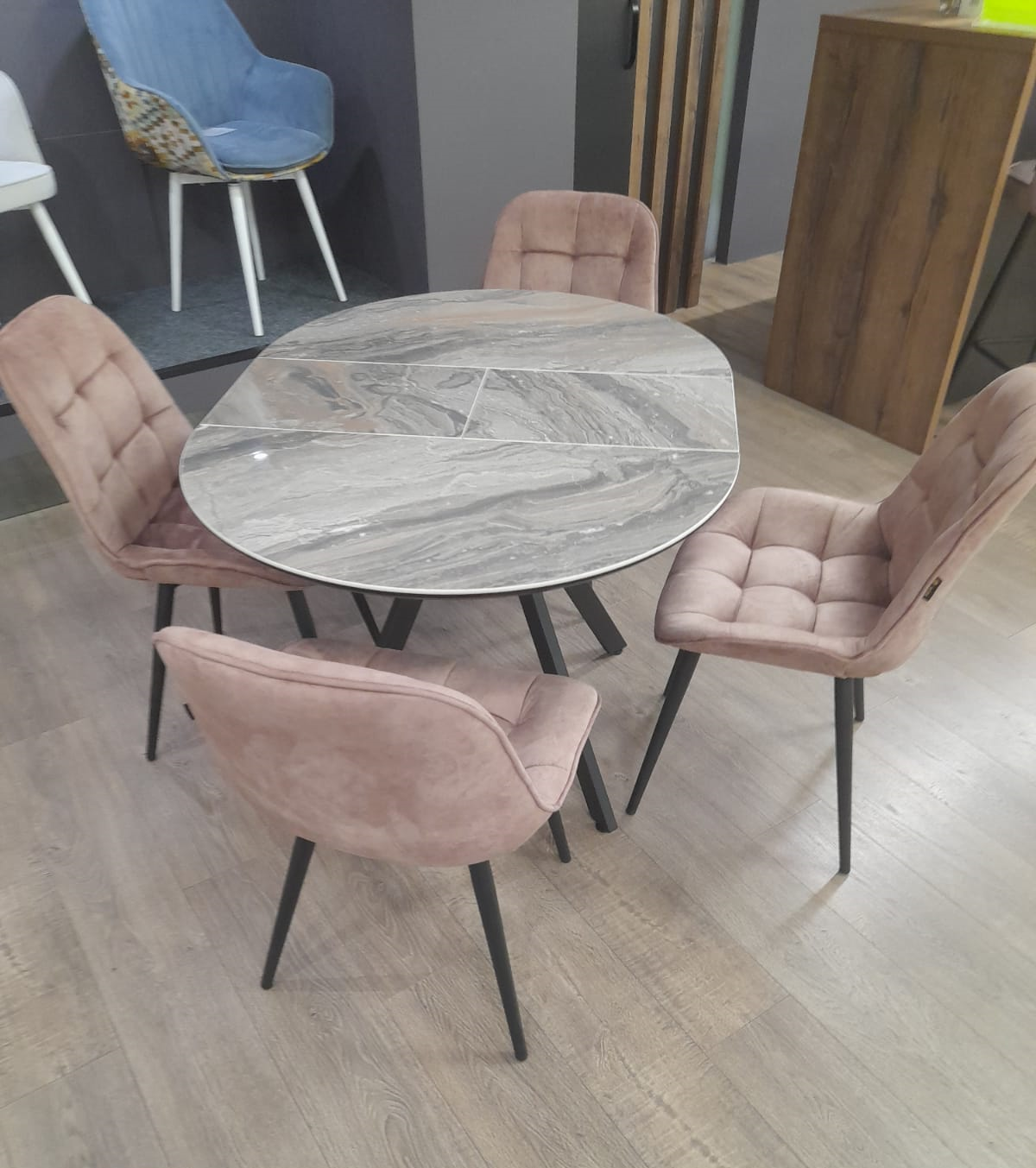 Стол обеденный "Олимп" ( КЕРАМИКА  Venetian Frown Light/ ЧЕРНЫЙ МУАР Размер 90 (+30) / 76)