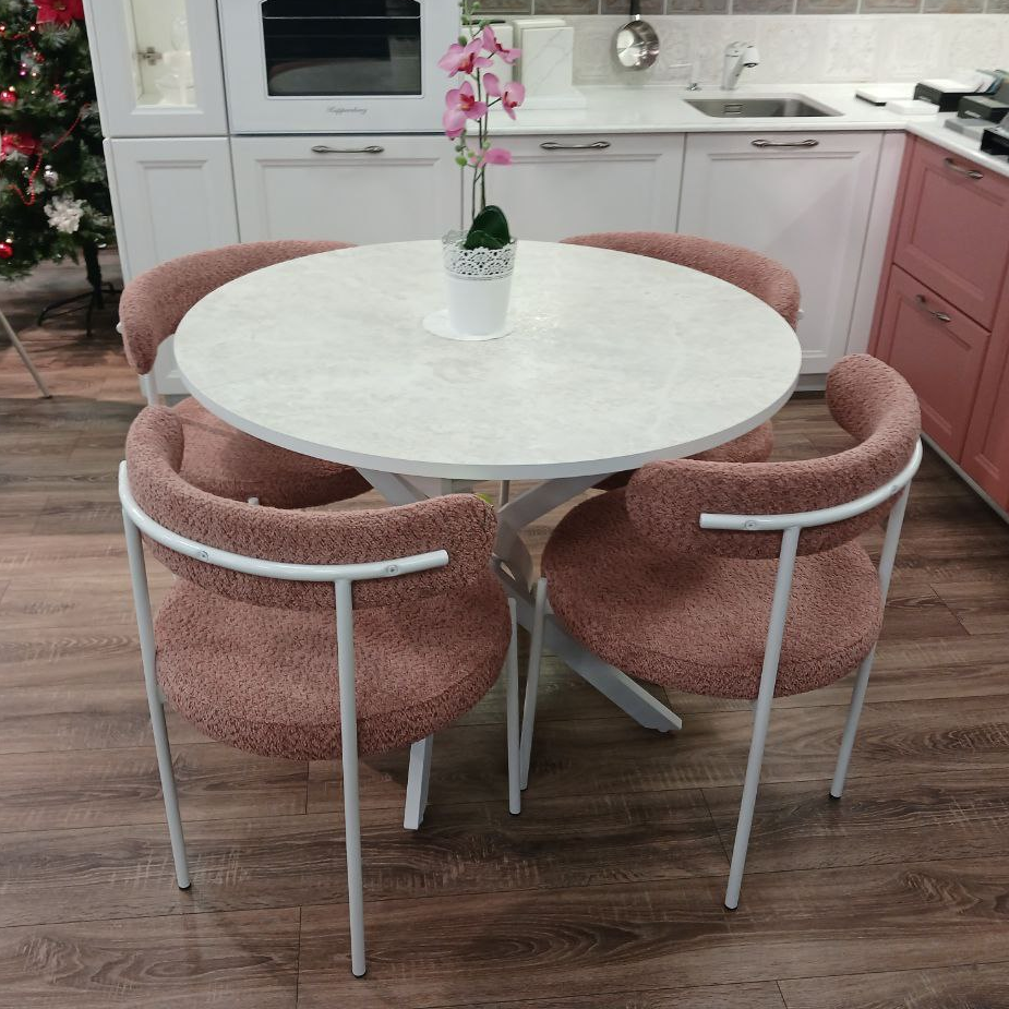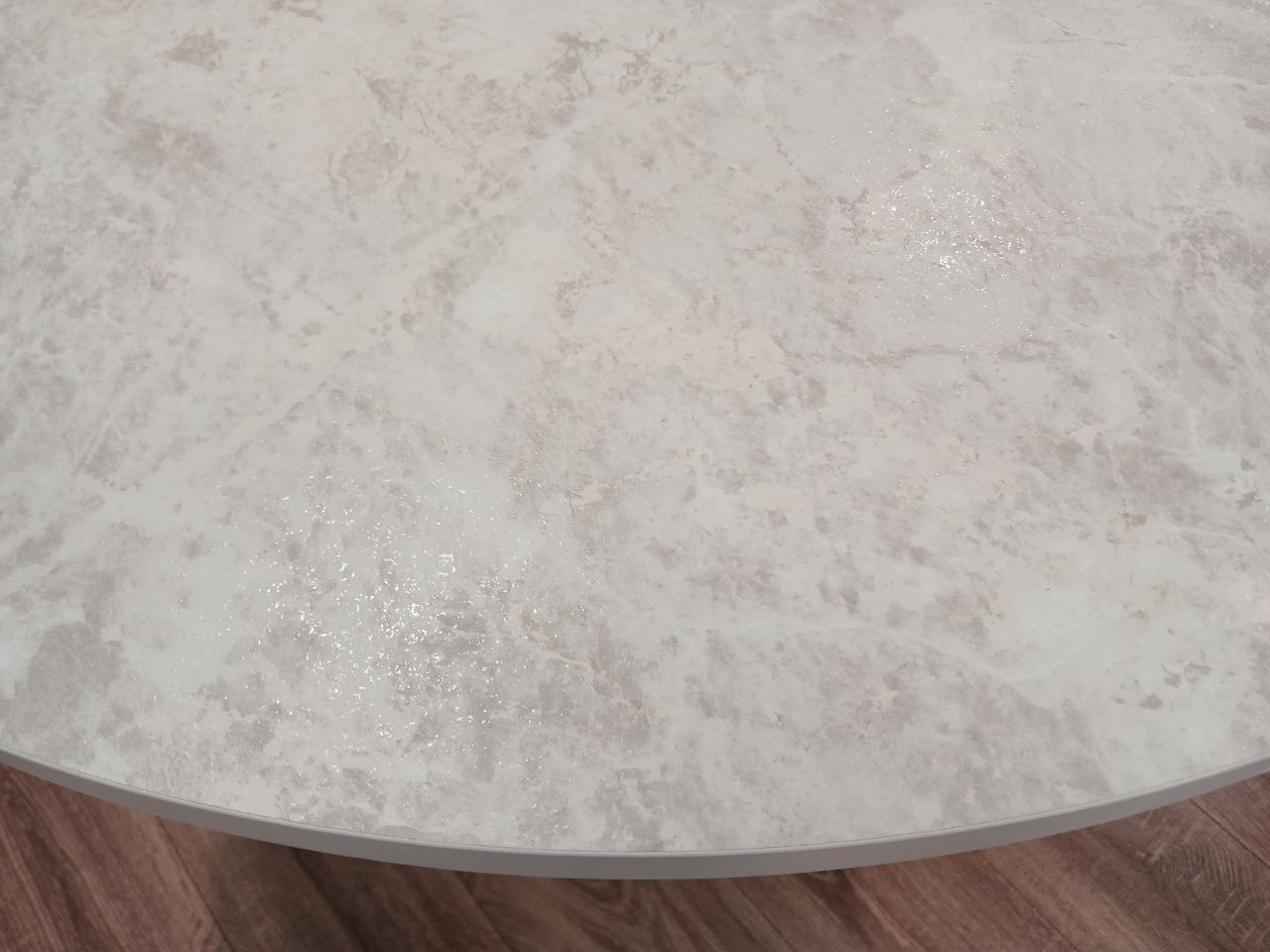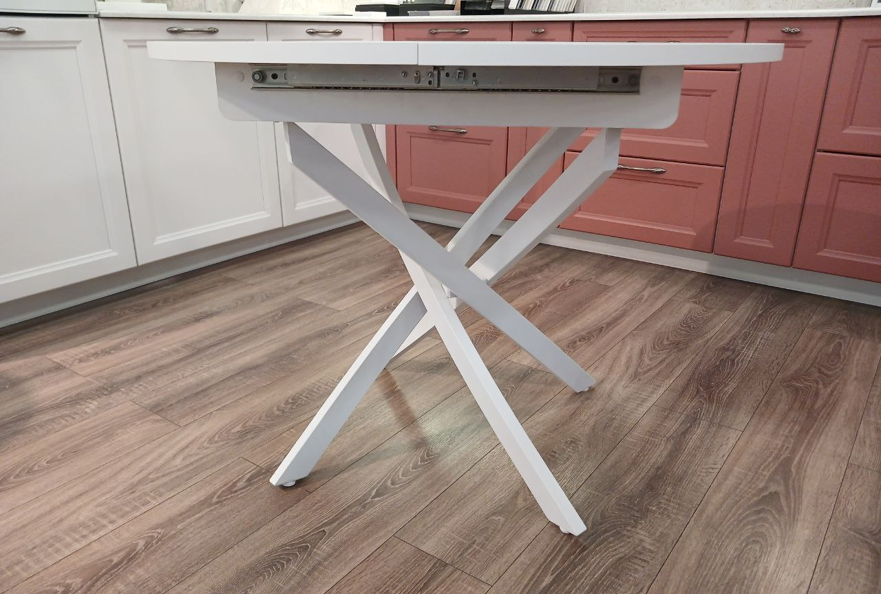 Стол обеденный "Стайл 24" раскладной (КОРОЛЕВСКИЙ ОПАЛ СВЕТЛЫЙ 707 ТС / БЕЛЫЙ МАТОВЫЙ. Размер 1000-1300 мм * 1000 мм * 750 мм)